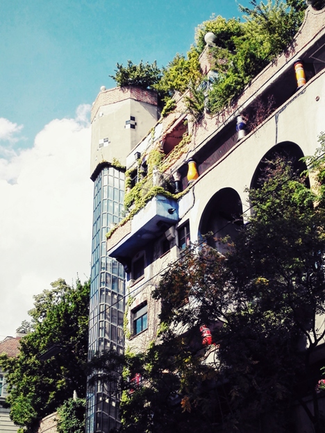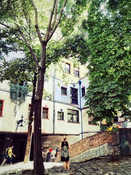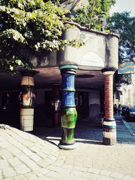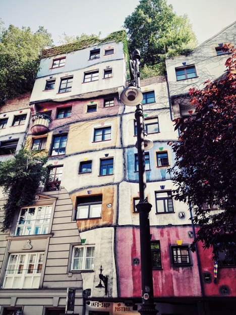 Saapumispäivänä lähdin käymään Hundertwasserhaussilla, mikä oli käytännössä ainoa syy, miksi Wienissä halusin käydä. Kiinnostus rakennuksiin liittyy omaan alaani. Se oli yhtä upea kuin kuvissa näyttikin. Olin vain kovin myöhään paikalla, niin päästäkseni käymään sisällä olisi pitänyt tulla seuraavana päivänä uusiksi, niin se jäi.