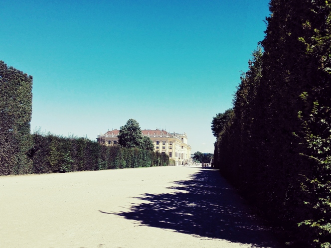 Mietin paljon etukäteen, minkä puiston valitsen kohteekseni. Kaikki tuntuivat kehuvan yhtä, mutta se oli aika kaukana keskustasta. Päätin lopulta, että haluan nähdä Wienin parhaimman puiston, joten menin Schönbrunnin linnanpuistoon. Myönnän, että olihan monessa paikassa hommaa ajateltu hyvin esteettisesti, mutta niissä osin, missä itse jaksoin paahteessa käyskennellä, ennen kuin luovutin, ei ollut mikään rento vilvoittelualue, vaan puut olivat melko harvassa. Lopulta luovutin ja päätin käydä syömässä hotellin läheisyydessä olevassa sushiravintolassa, missä sushit olivat vain 0,5€ hintaisia ja loppuillan vilvoittelin ilmastoinnin ja viinin voimin omassa rauhassa ennen seuraavaa hostellielämää.